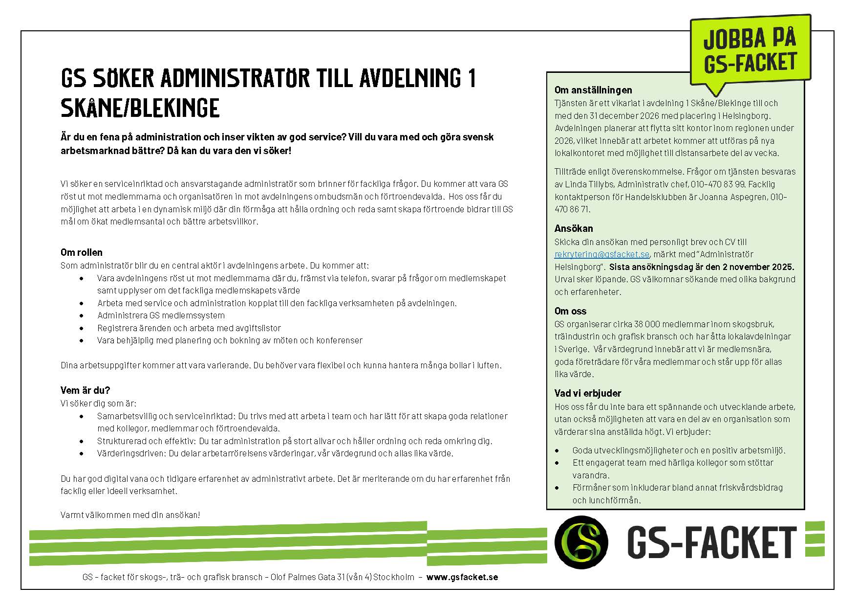 Som medlem i GS står du aldrig ensam. Våra krav gentemot arbetsgivaren väger tyngre när vi framför dom tillsammans! Här kan du få reda på vad som ingår i medlemskapet. Du som redan är medlem kan logga in på Mina Sidor för att läsa ditt avtal, uppdatera dina uppgifter och hitta kontaktuppgifter till dina fackliga ombud.